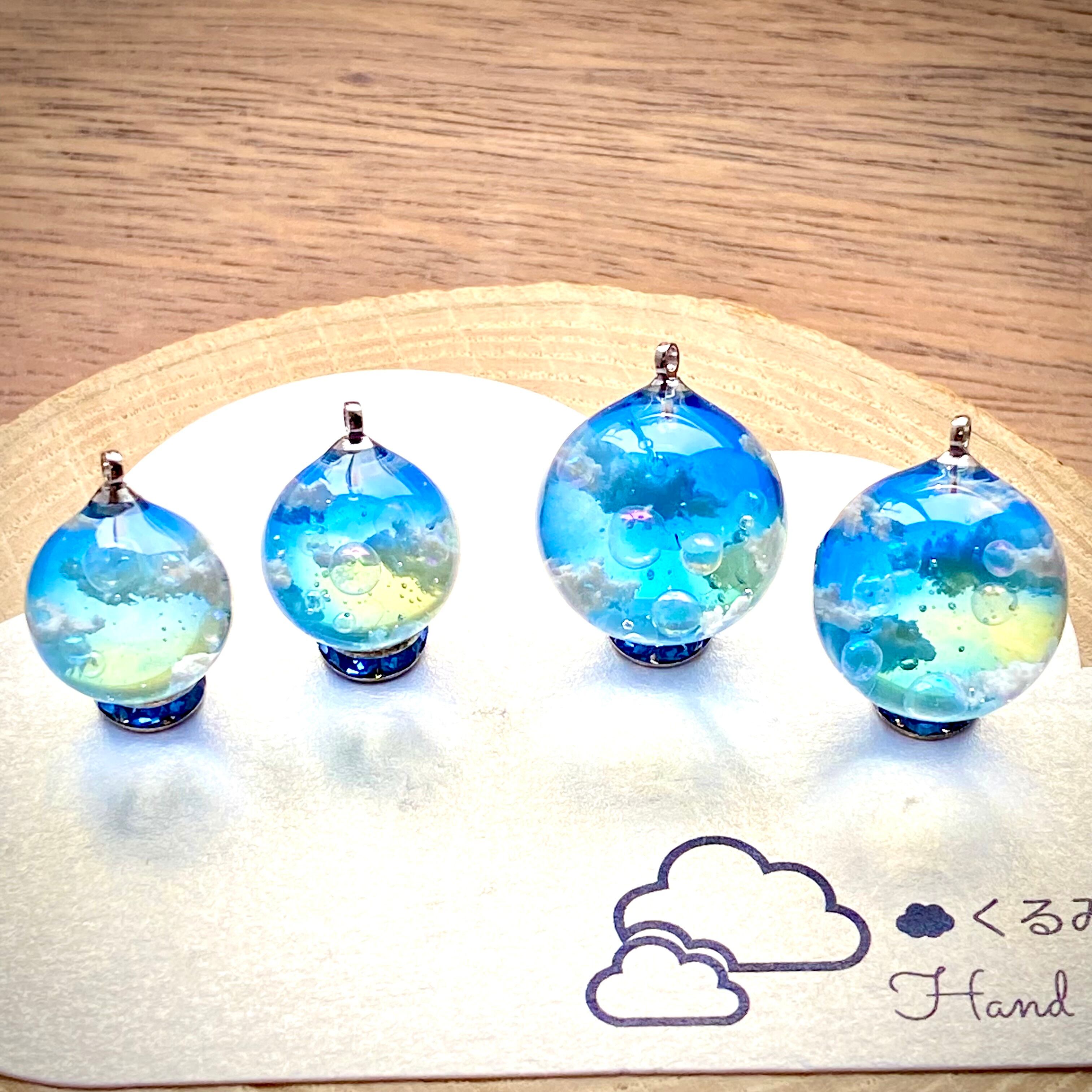 青空とシャボン玉をイメージしてまん丸なピアスを作りました。