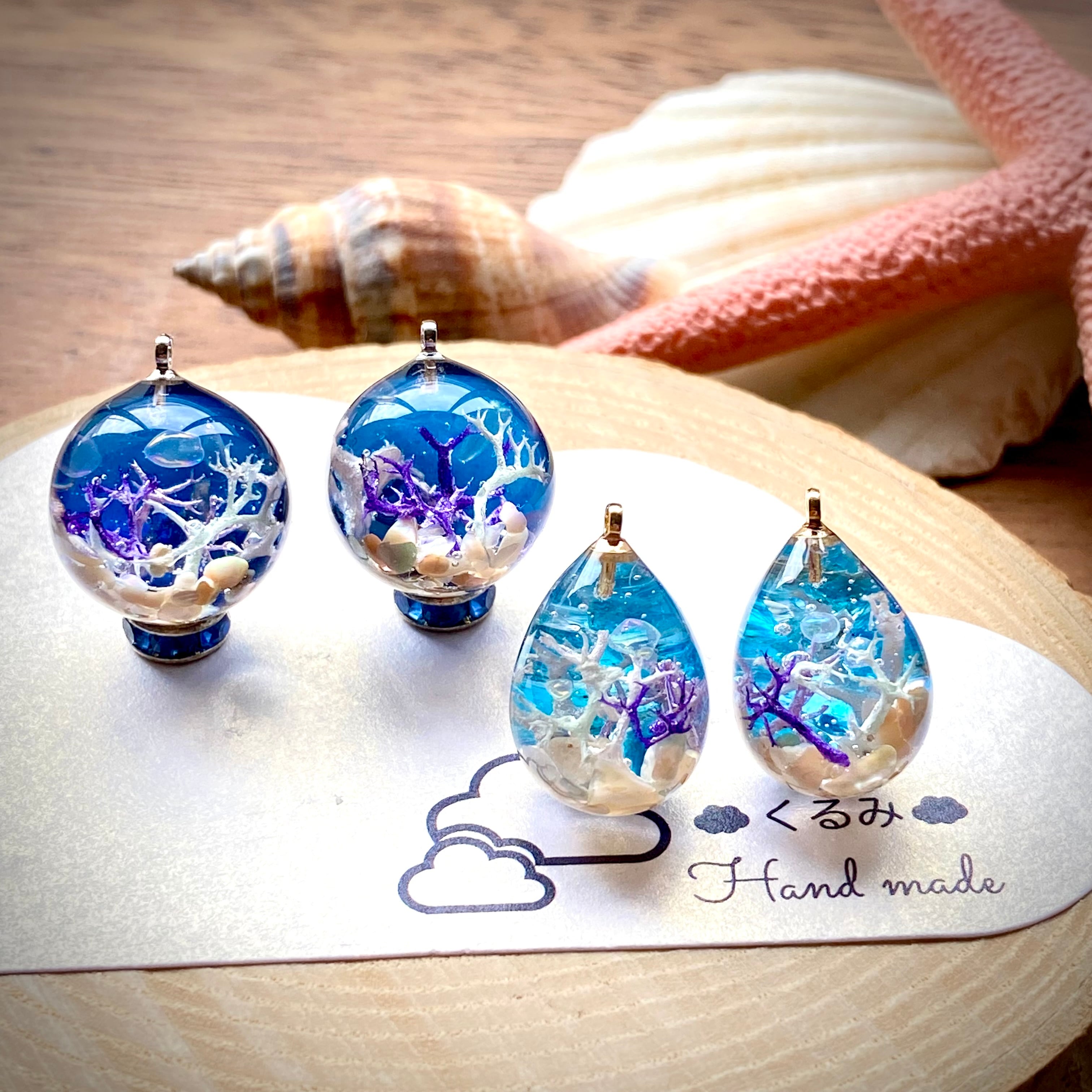 珊瑚の冬の海のまん丸なピアスを作りました。