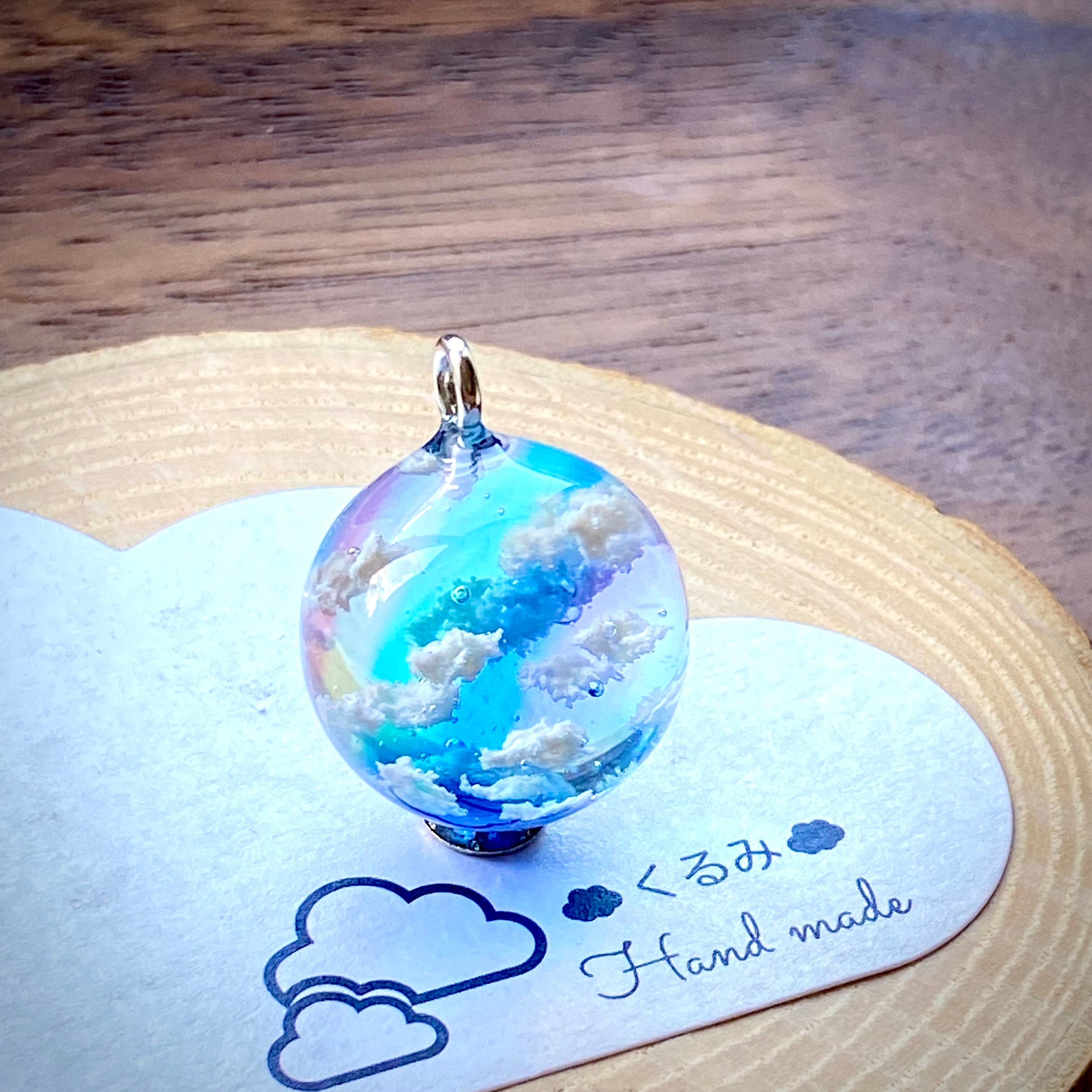 青空にかかる虹をイメージしてまん丸なペンダントを作りました。