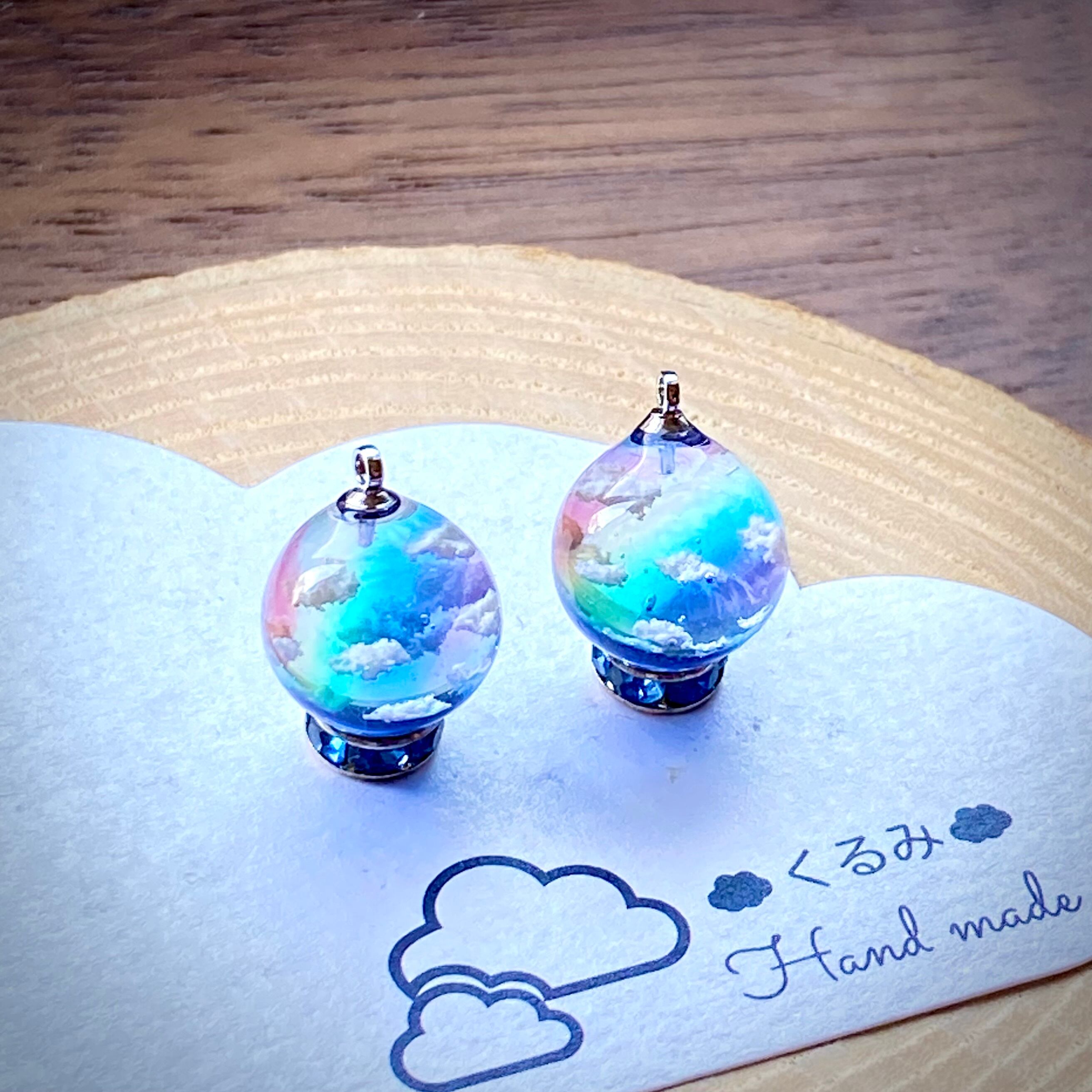 青空にかかる虹をイメージしてまん丸なピアスを作りました。