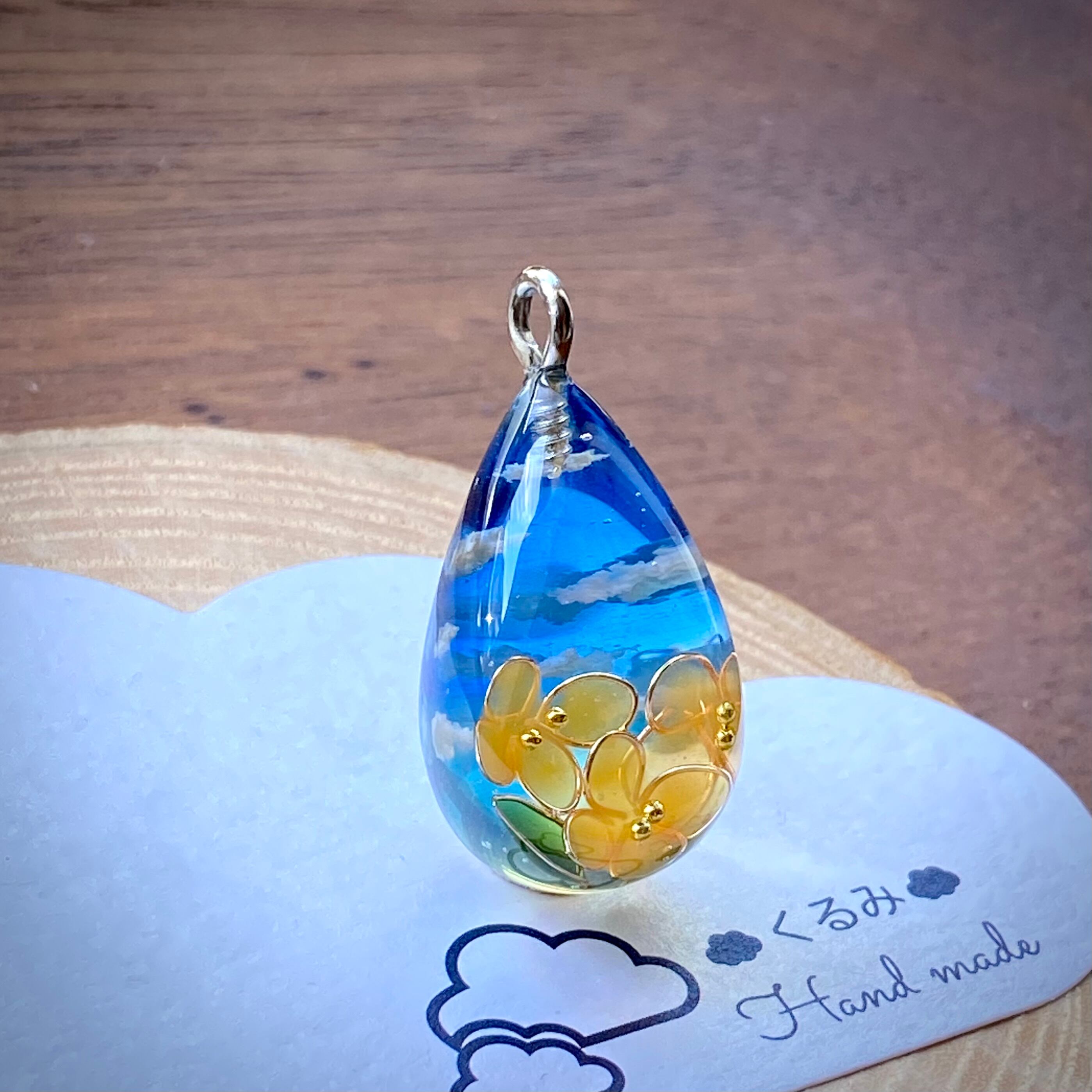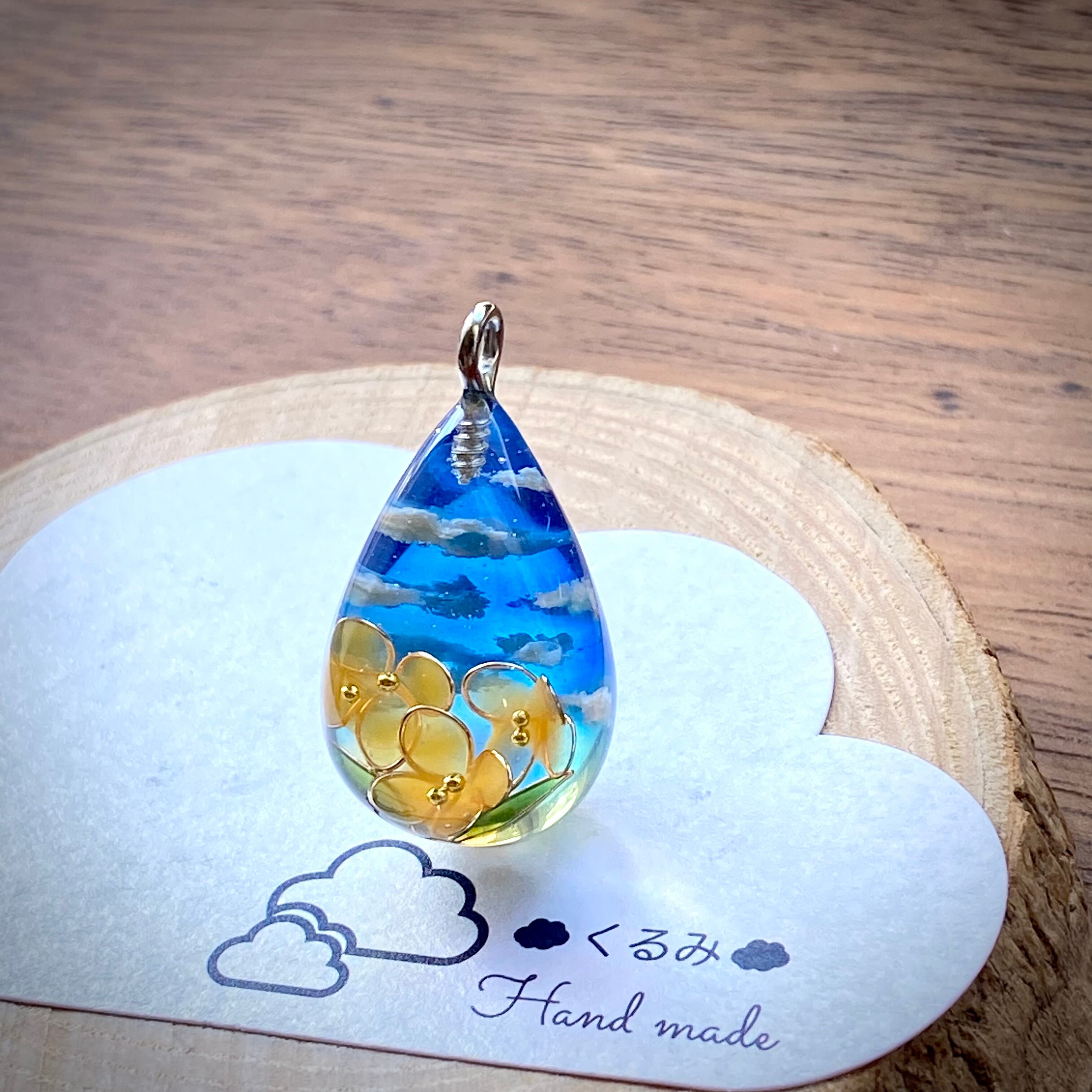 しずく型で金木犀と青空のネックレスを作りました。