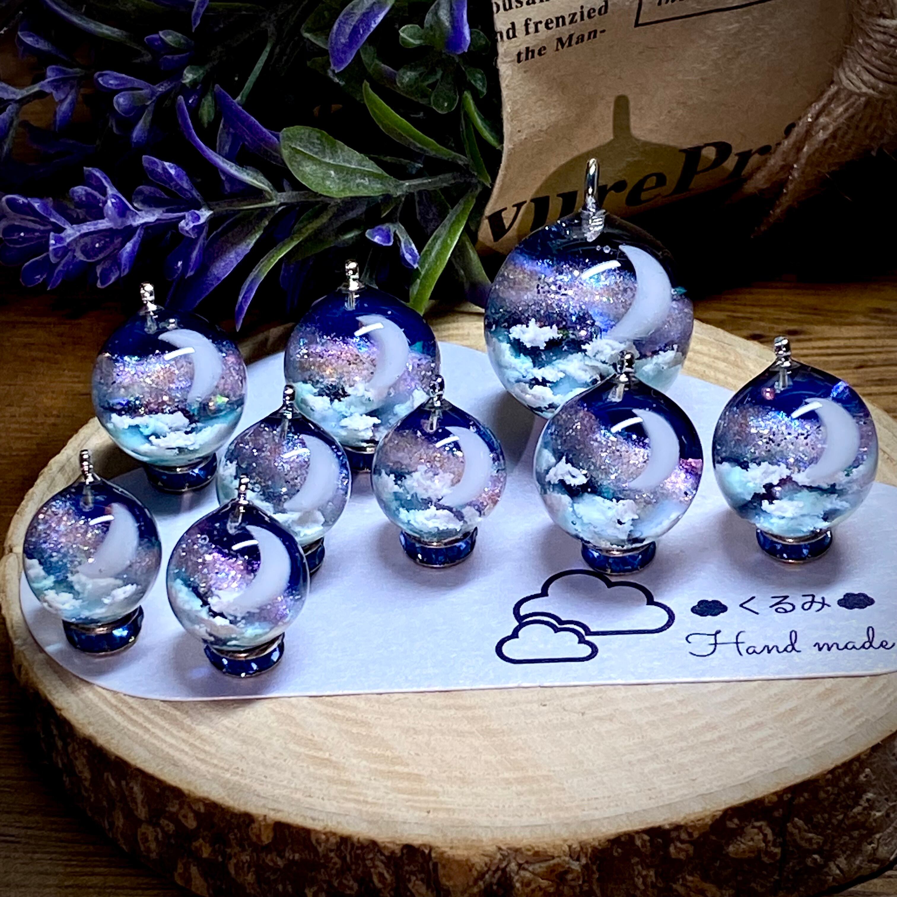 レジンピアス イヤリング 三日月 夜空と天の川 まん丸 12mm c