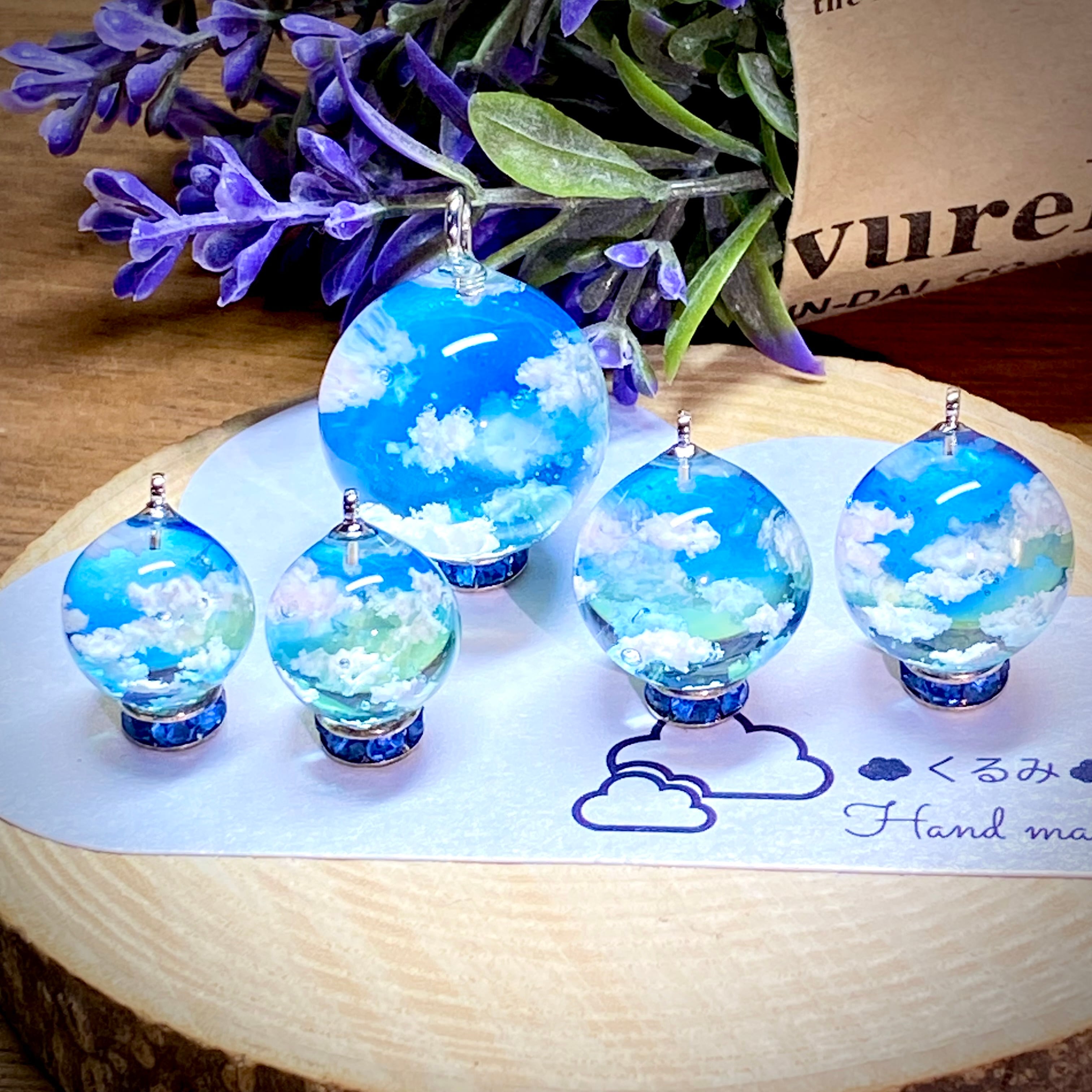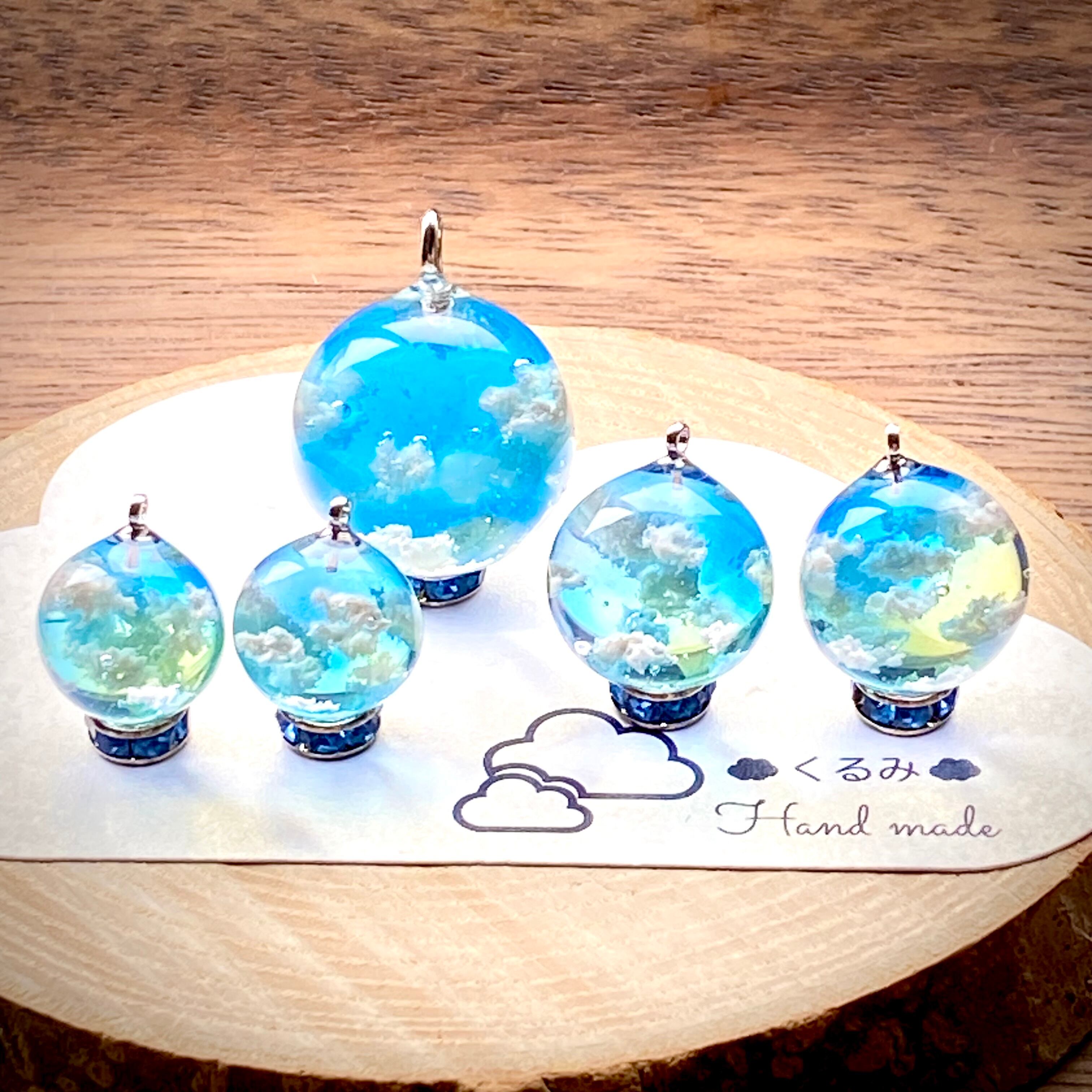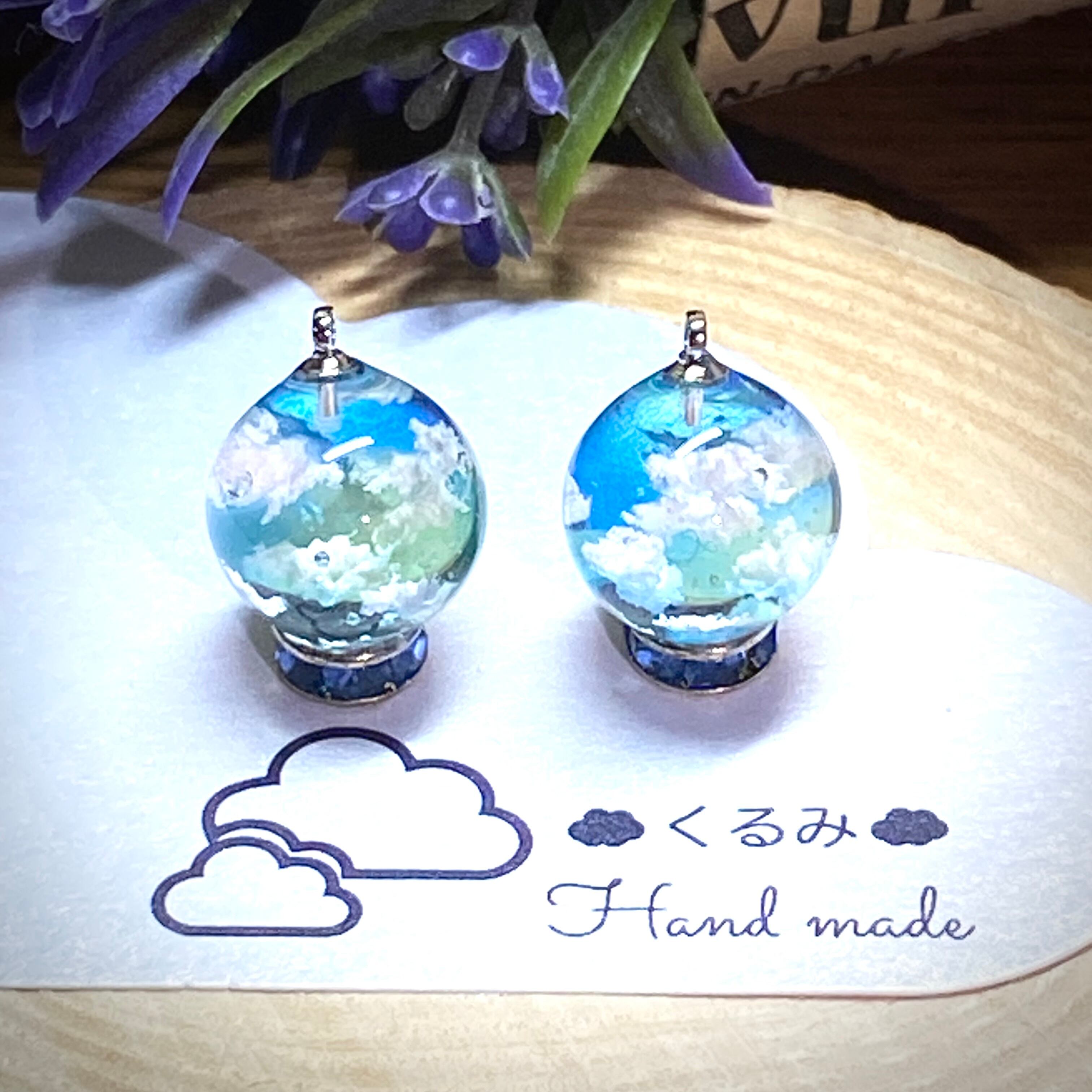 淡い青空をイメージしてまん丸ピアスを作りました。