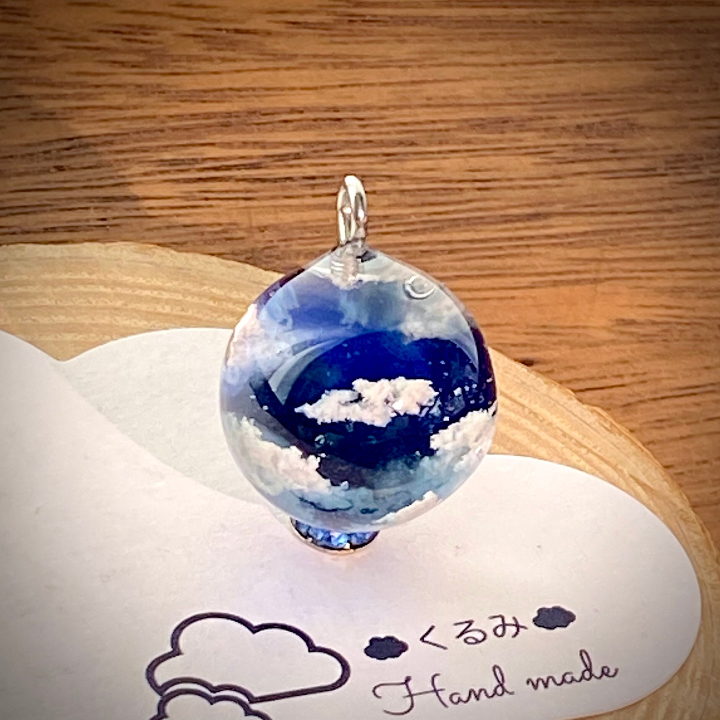 夜空をイメージしてまん丸なペンダントを作りました。